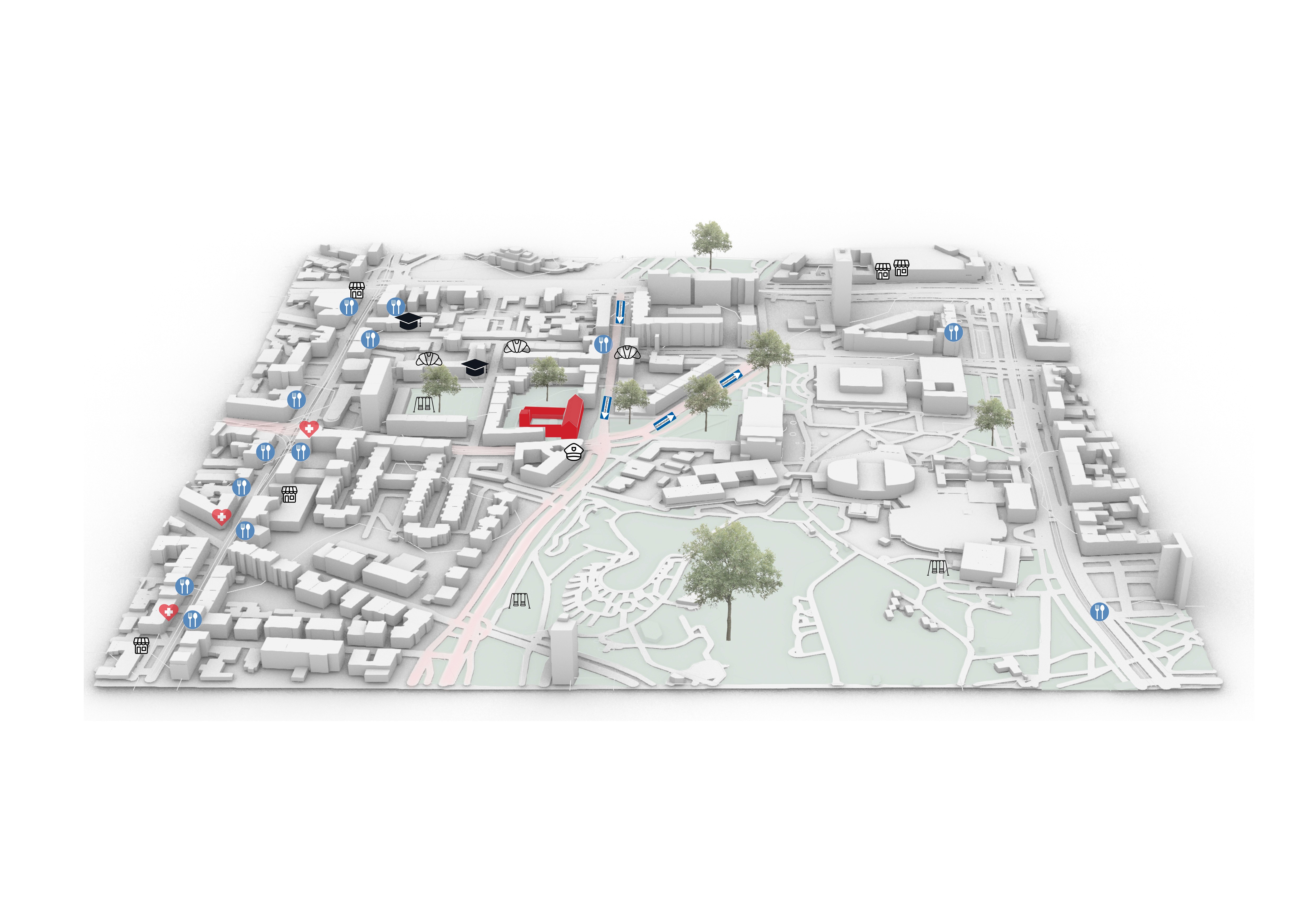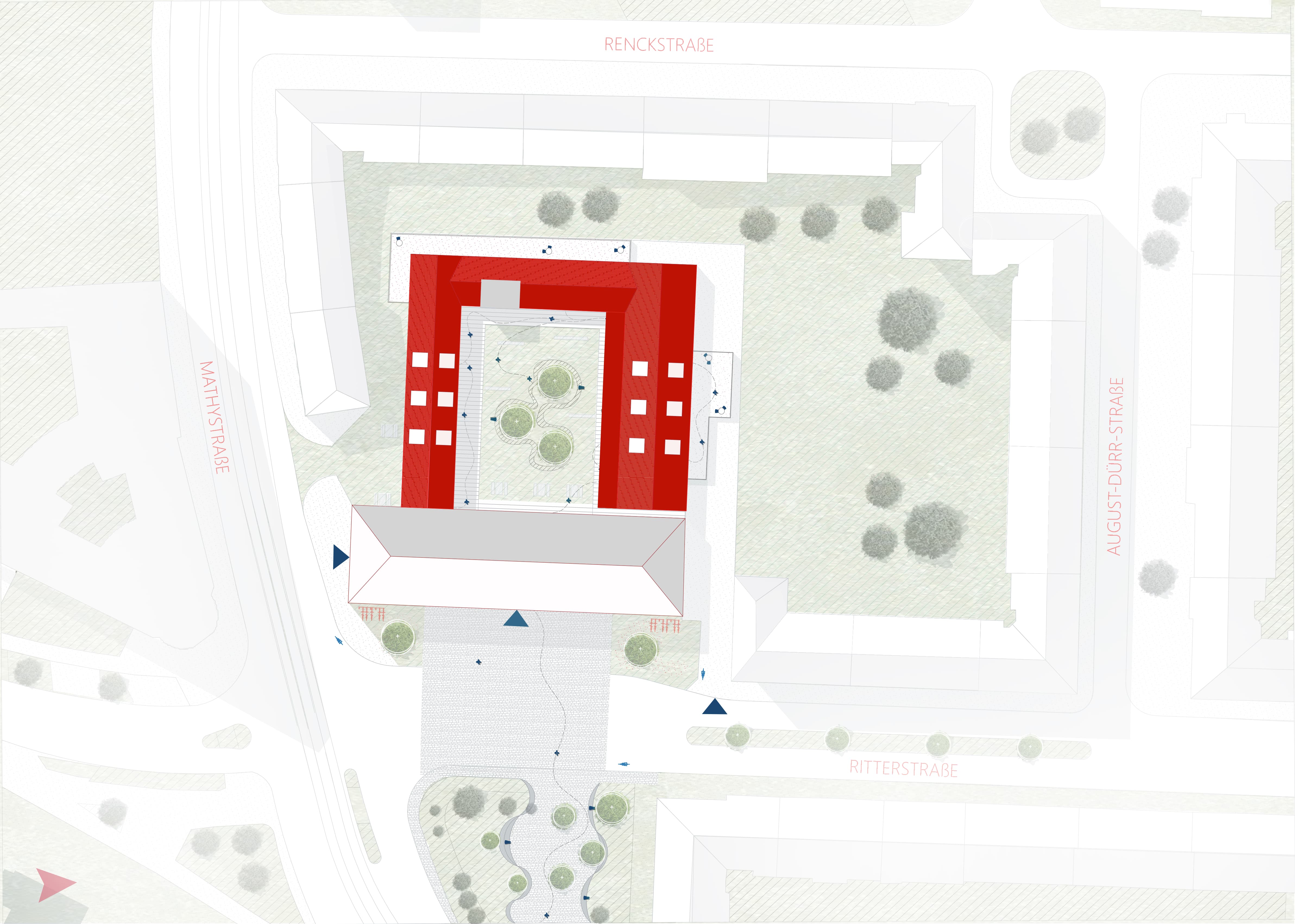 The newly planned site of the former Karlsruhe fire station is located in Karlsruhe's southwest district, at the corner of Ritterstraße and Mathystraße.